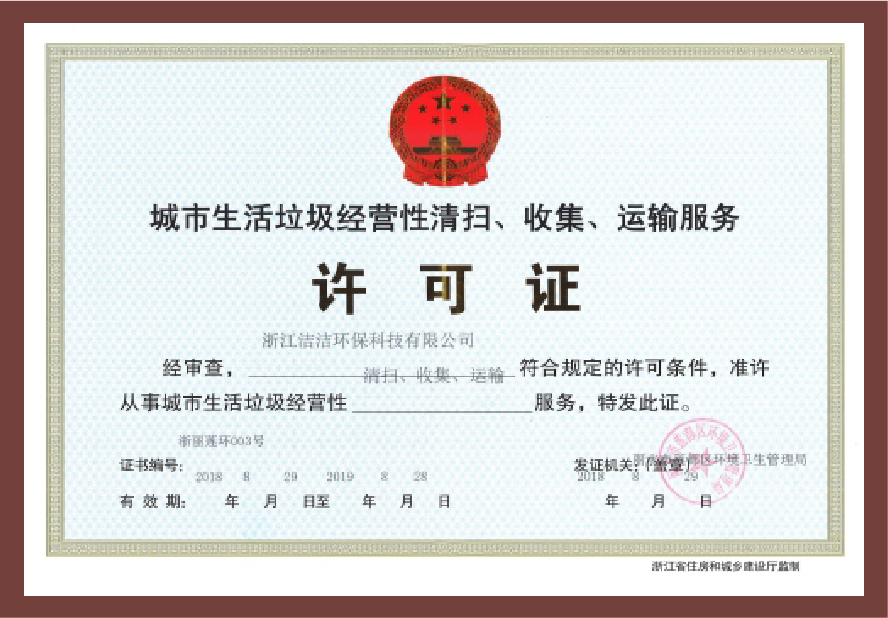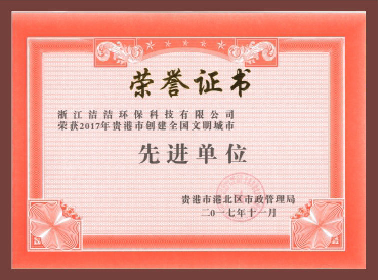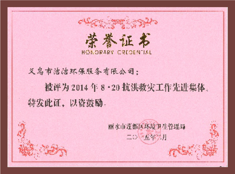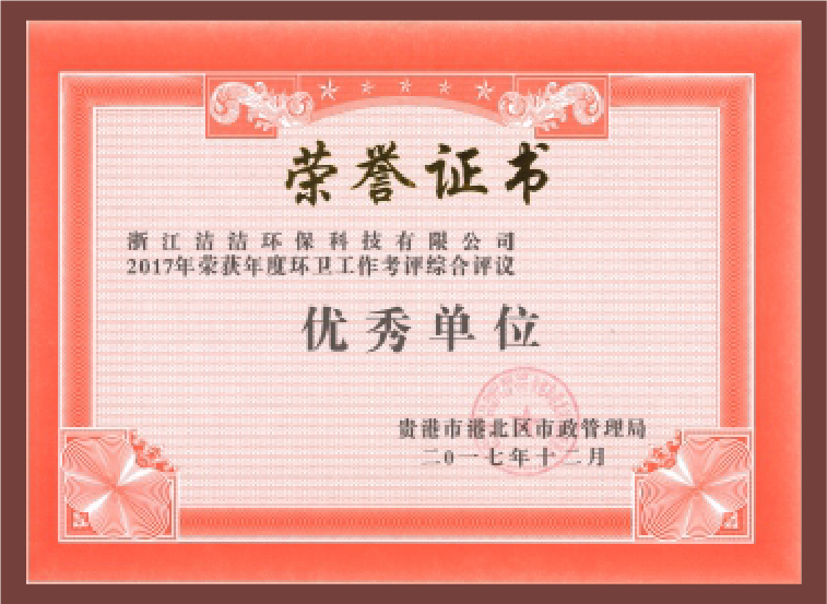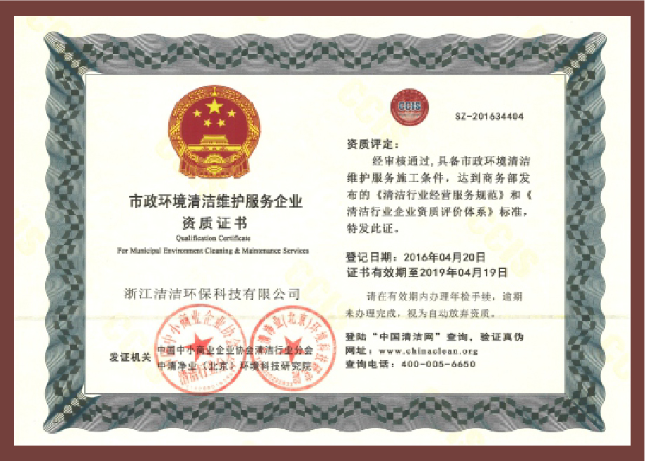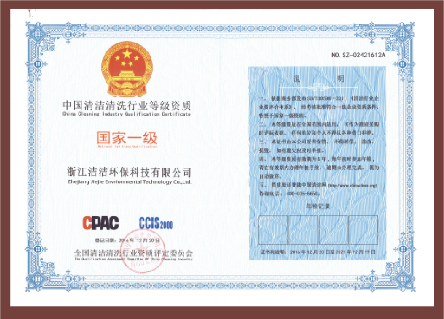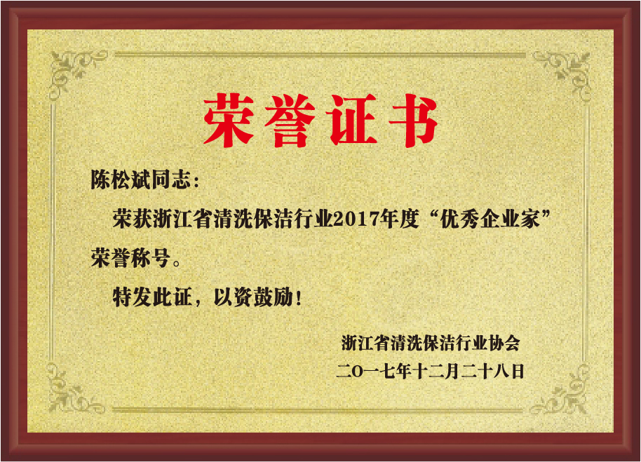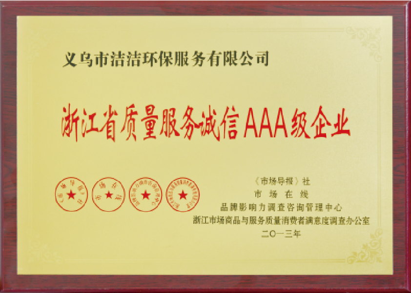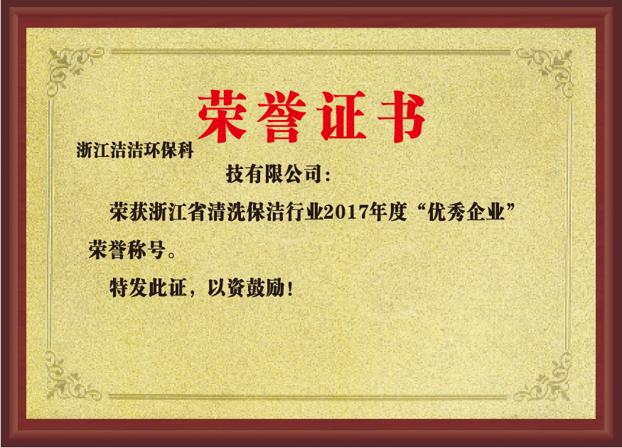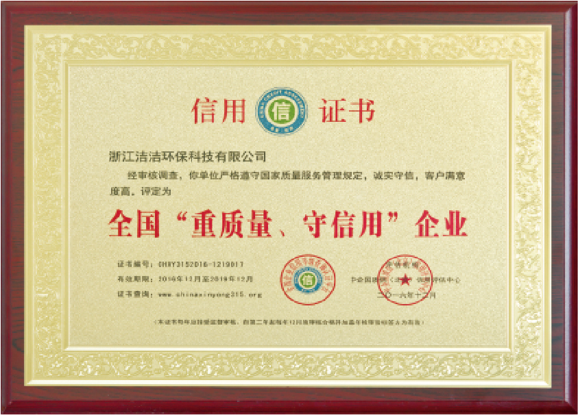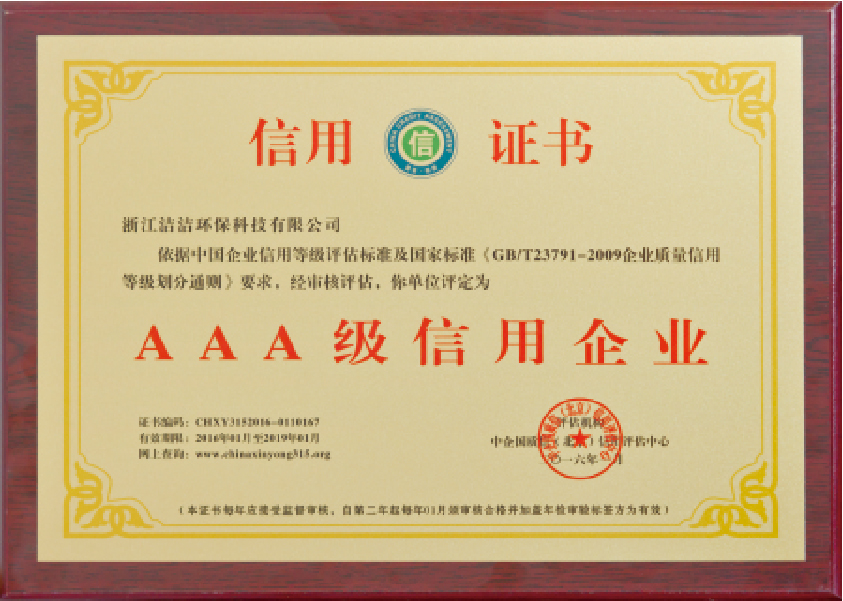 重要荣誉:“全国信用等级AAA级企业”、全国“重质量、守信 用企业”、“浙江省质量服务诚信AAA级企业”、中国中小商业 企业协会清洁行业分会常务理事员会单位
